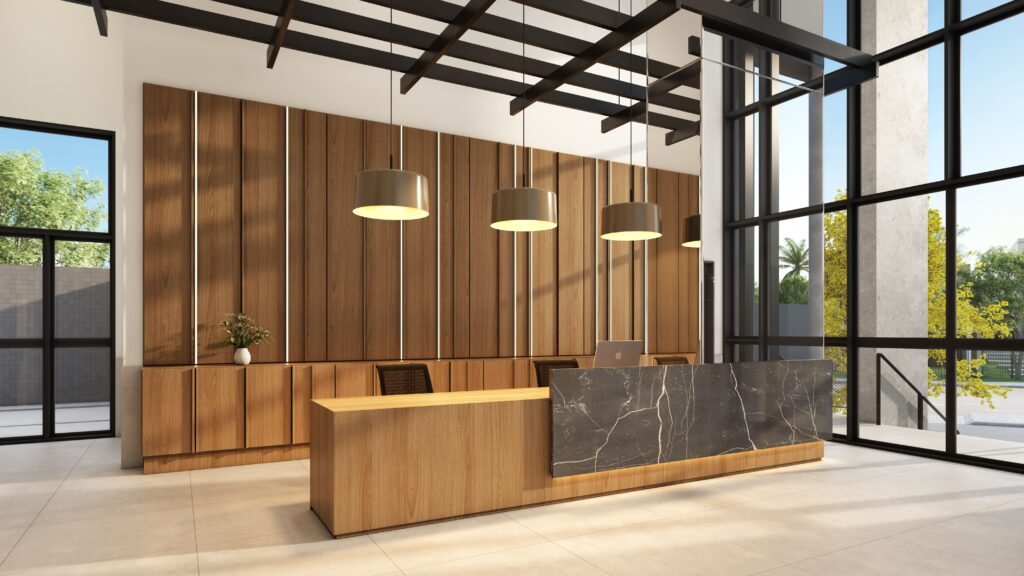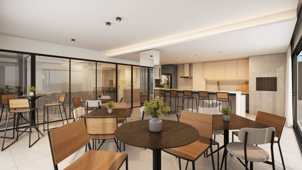 O projeto prioriza proporção, equilíbrio e funcionalidade. Materiais nobres, paleta sóbria e acabamentos refinados reforçam a identidade de solidez e sofisticação.